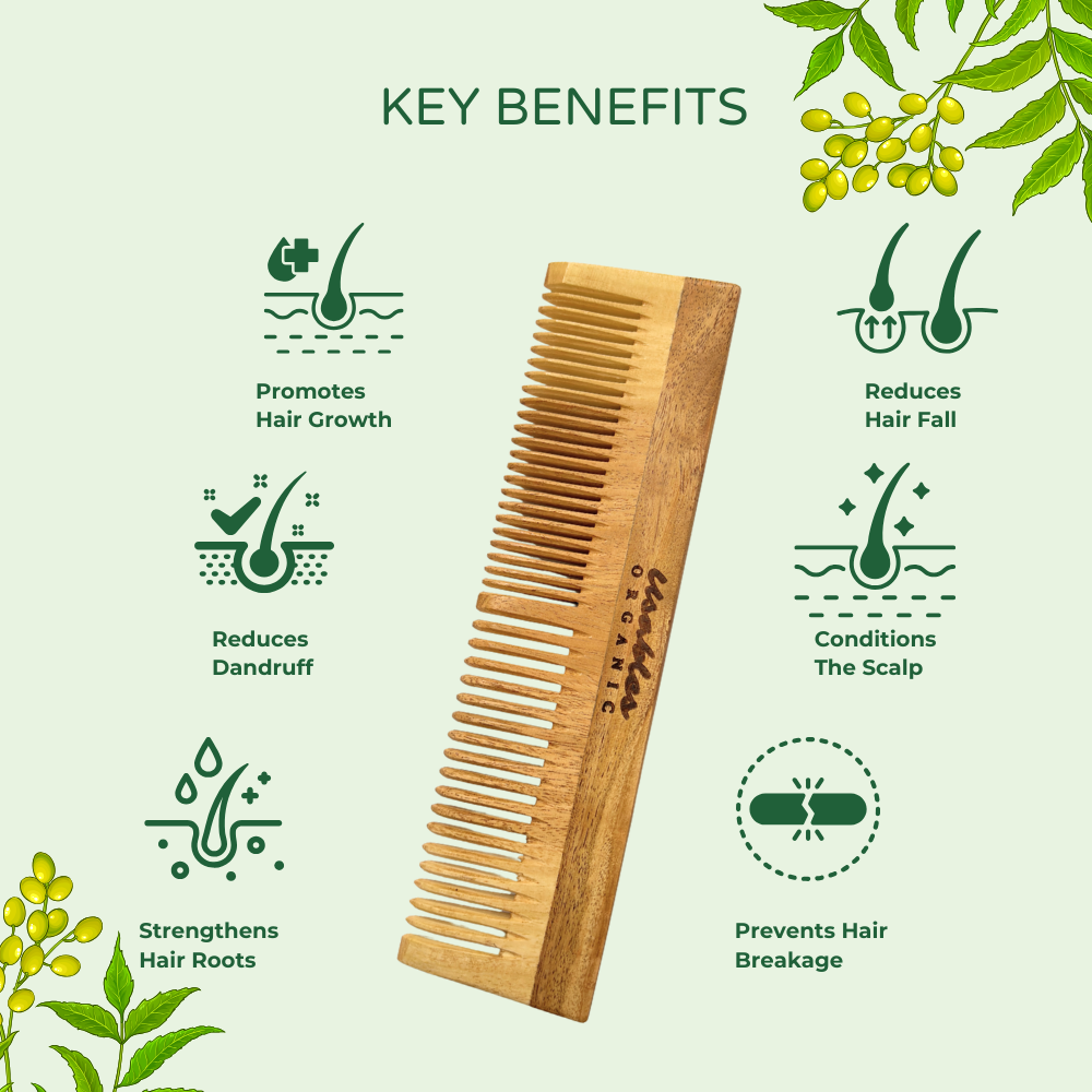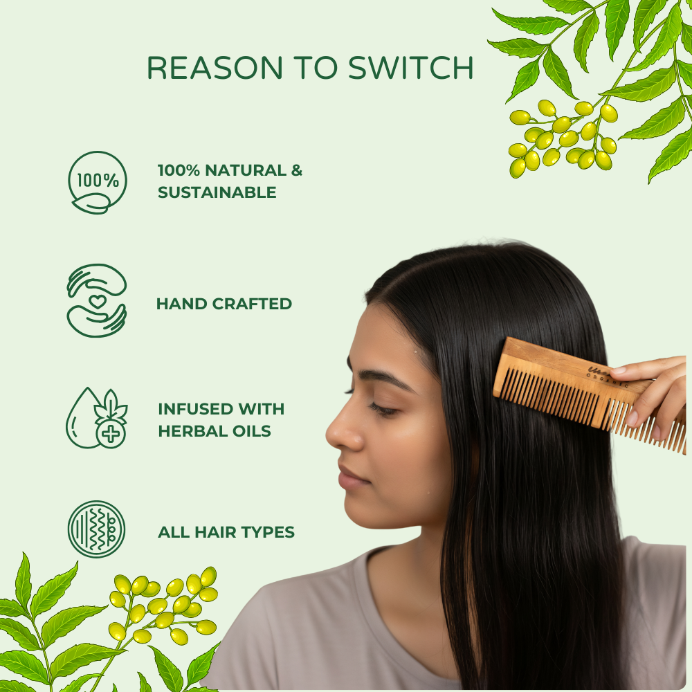 Plastic combs generate an electrostatic charge that lifts your hair's cuticle, leading to frizz and breakage. Our Kachhi Neem Wood Comb is naturally non-static. It glides effortlessly through your hair, immediately reducing frizz and preserving hair integrity.