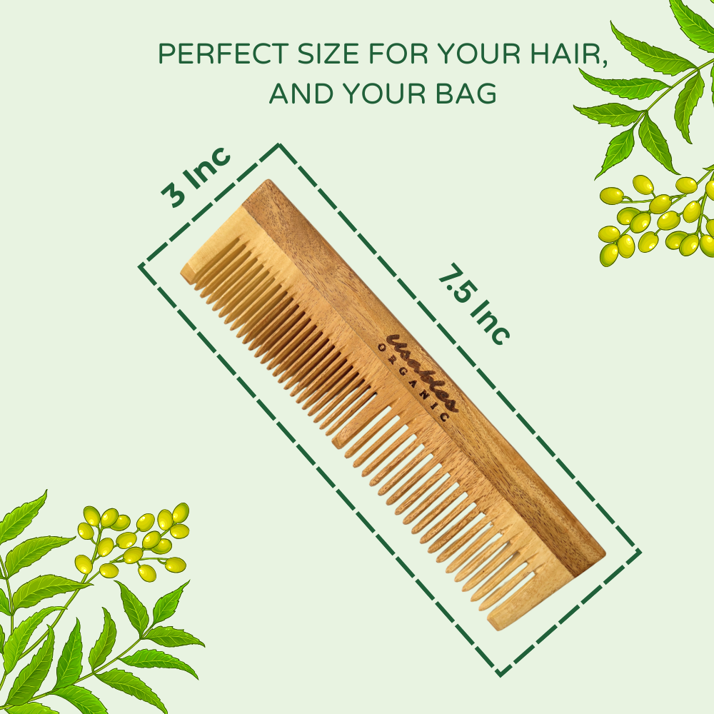 Handcrafted from 100% natural neem wood, this comb is more than a grooming tool—it's a scalp treatment. The dual-teeth design offers versatility for every hair type.
